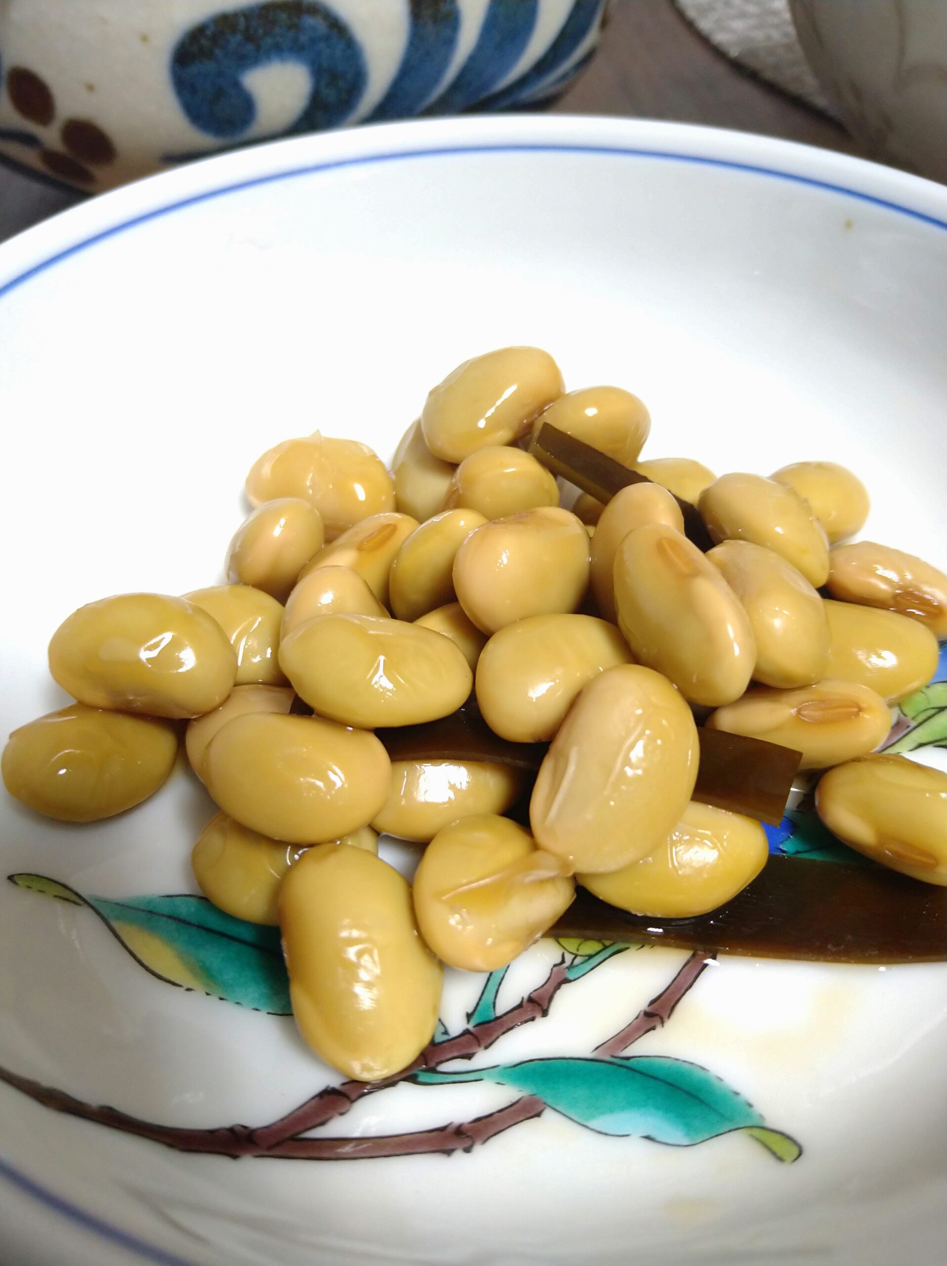 塩茹でしても甘い秘伝豆です。しかし、いつも同じ料理方法だと飽きるので、今回は醤油と昆布で!