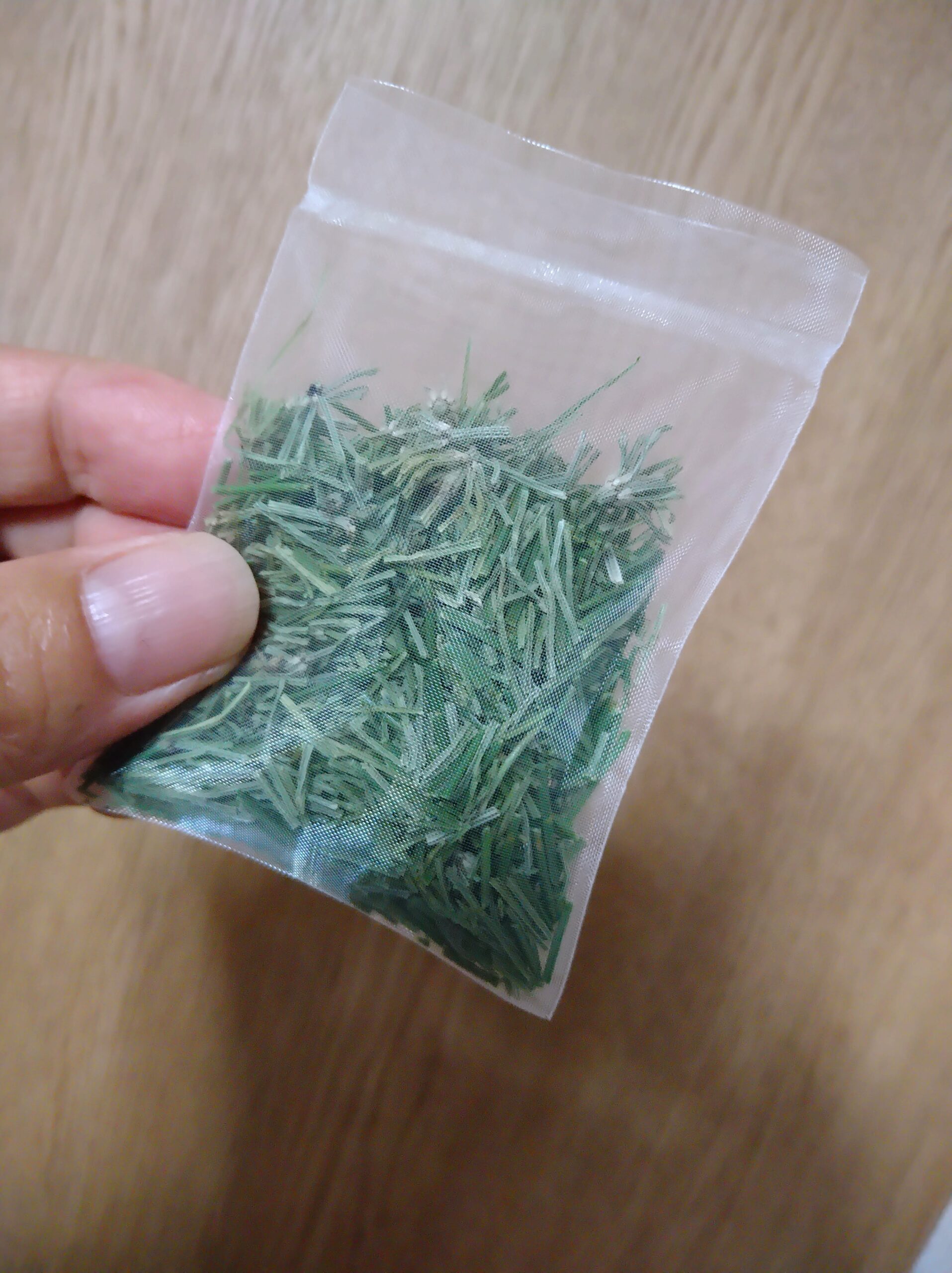 赤松葉ティーパックは生の松葉なので鮮度が命。だから、その飲みきるタイミングで新しいのを買うのがベスト