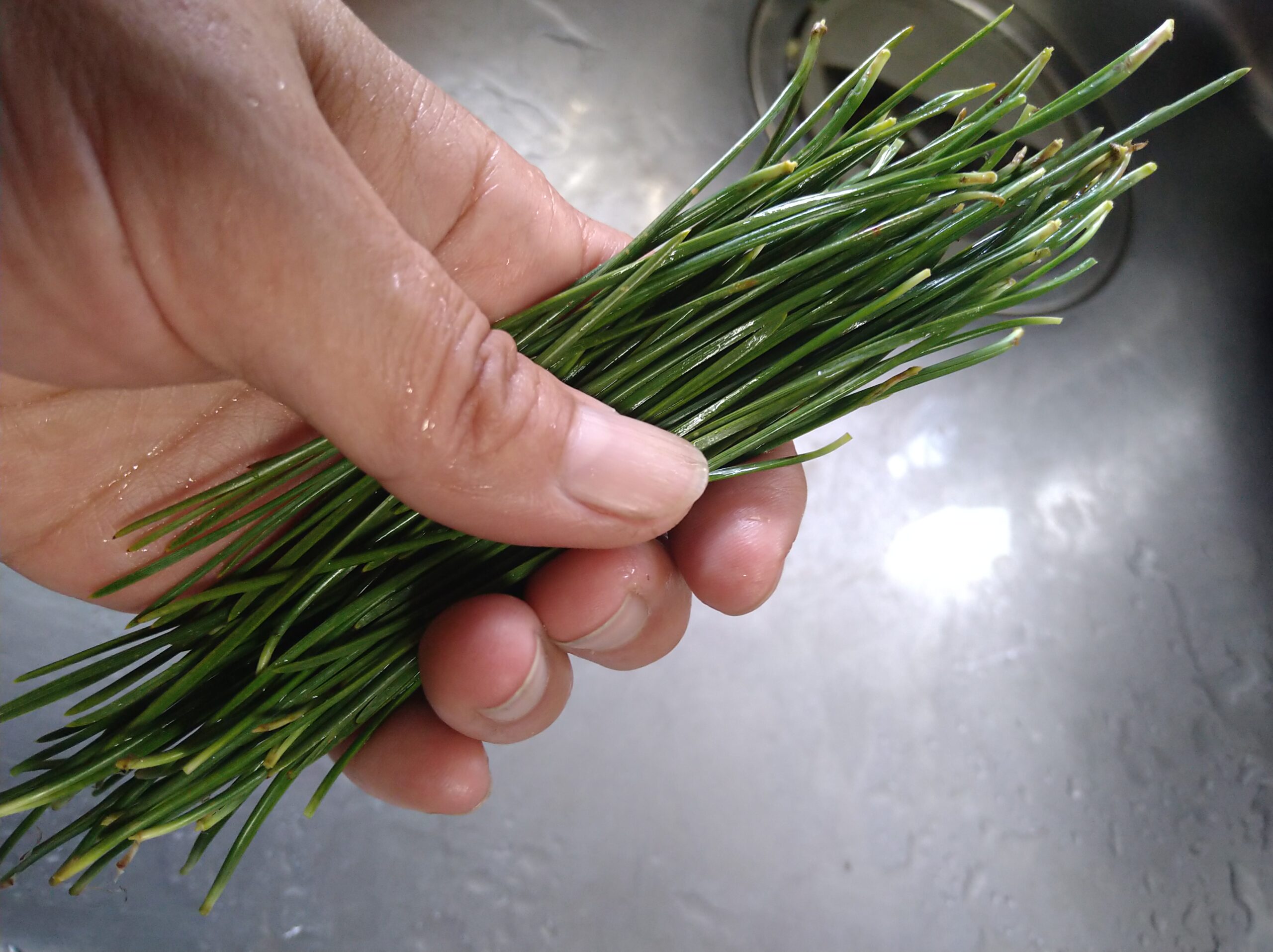 最初に一掴み分の松葉を用意します。松葉はその飲む日に松からいただいた葉がベストです。