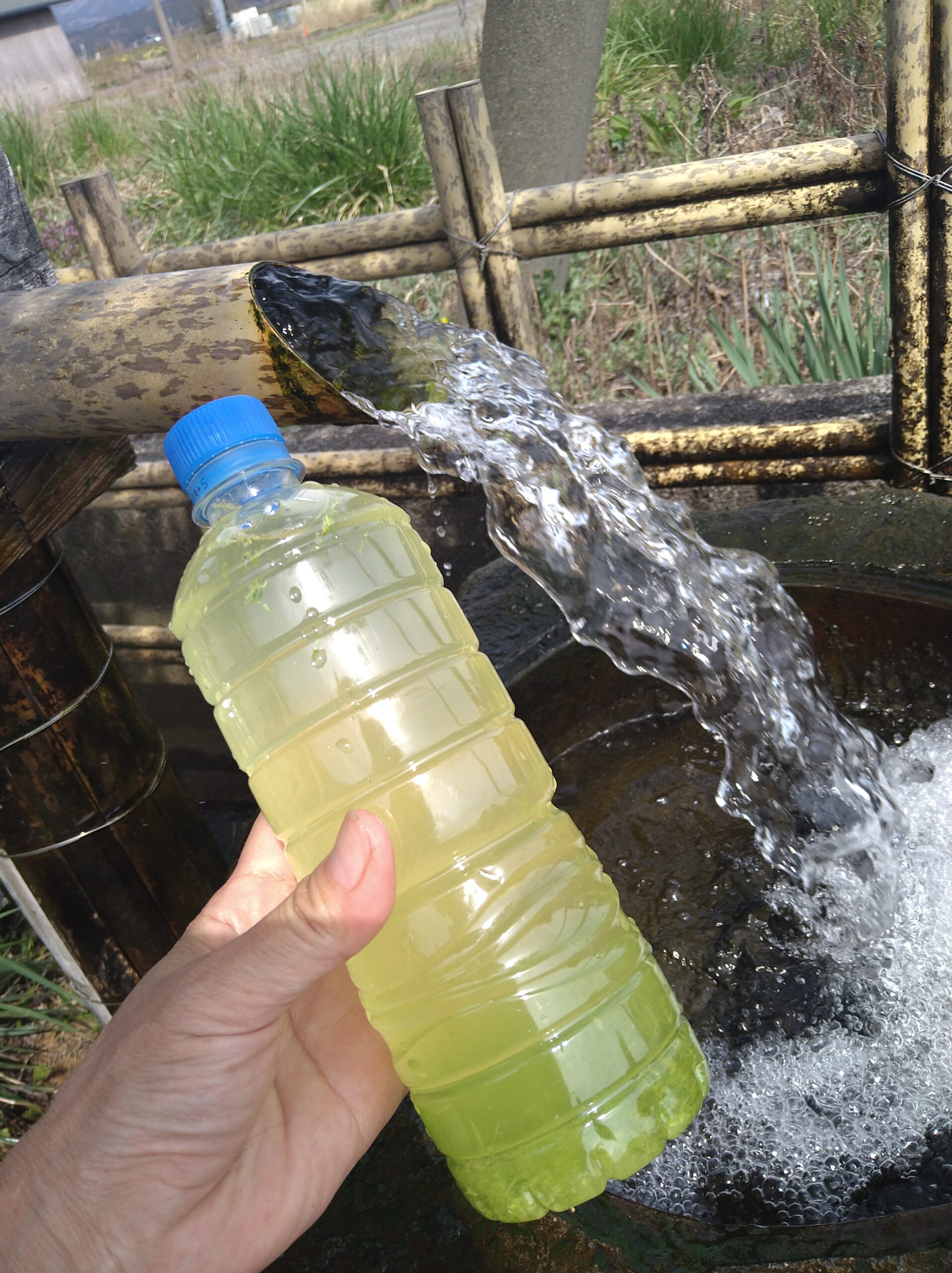 (写真は山形県遊佐町の湧き水スポット「丸勝の水」で松葉のカスに湧き水と入れたときのもの)