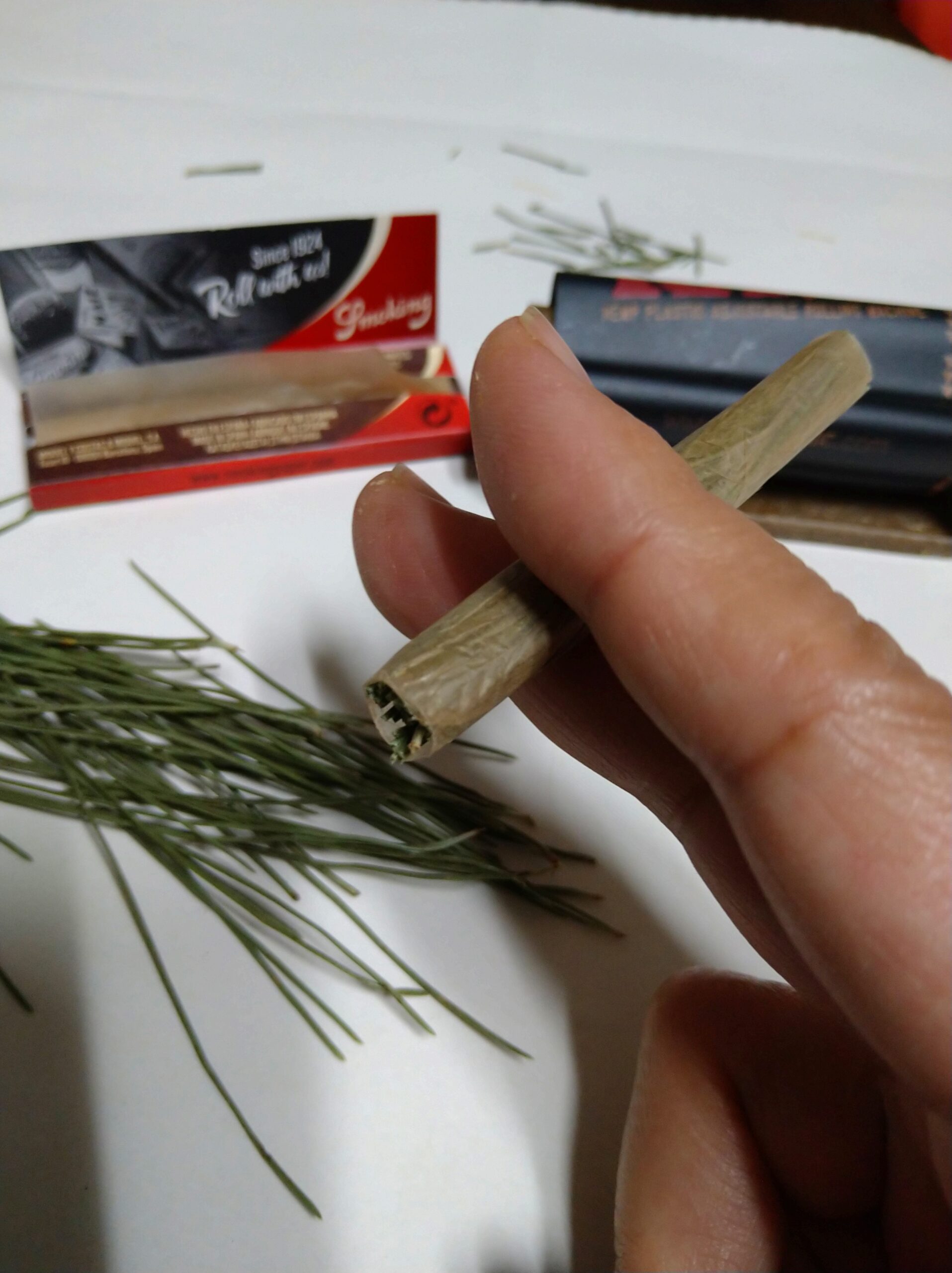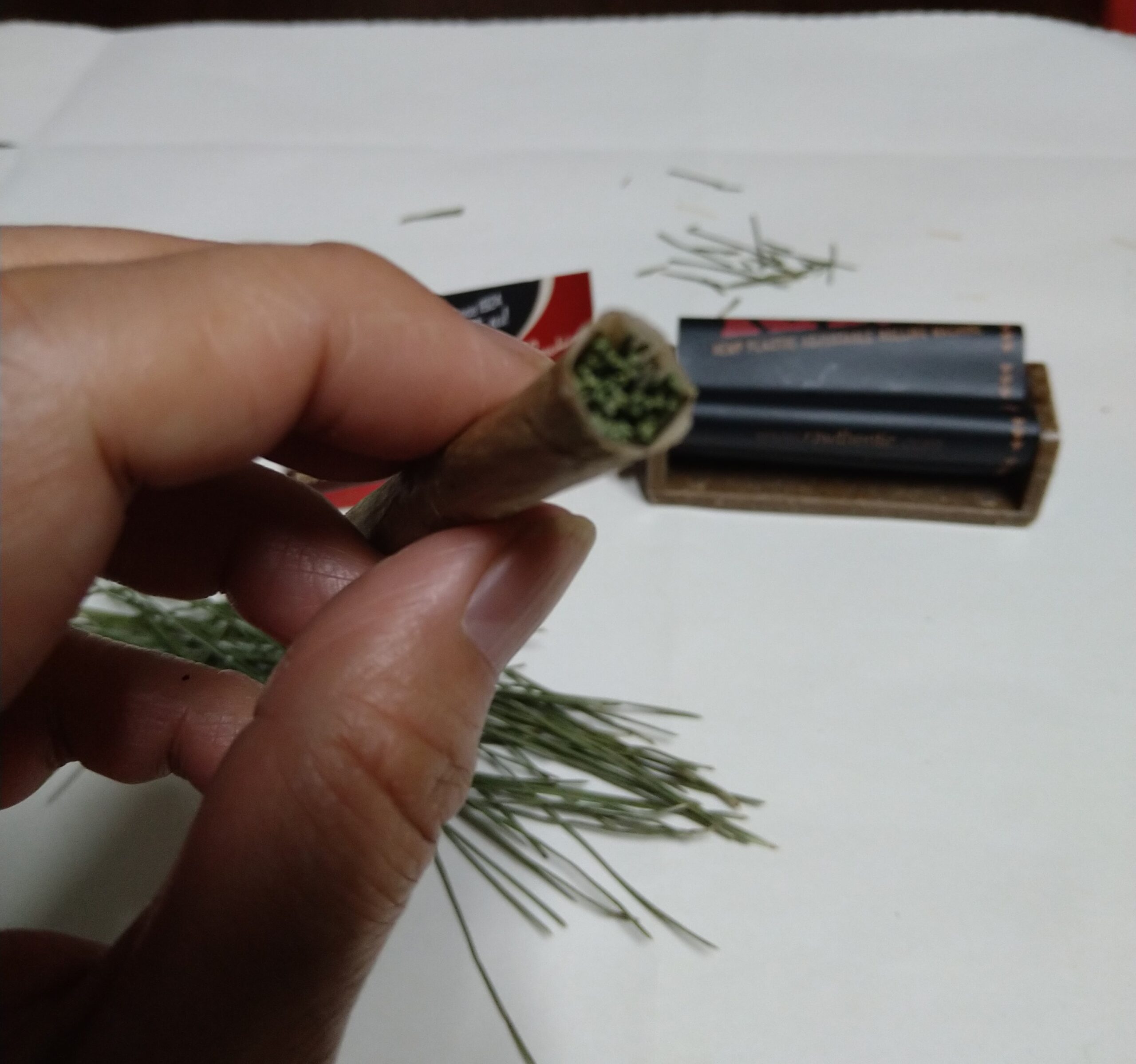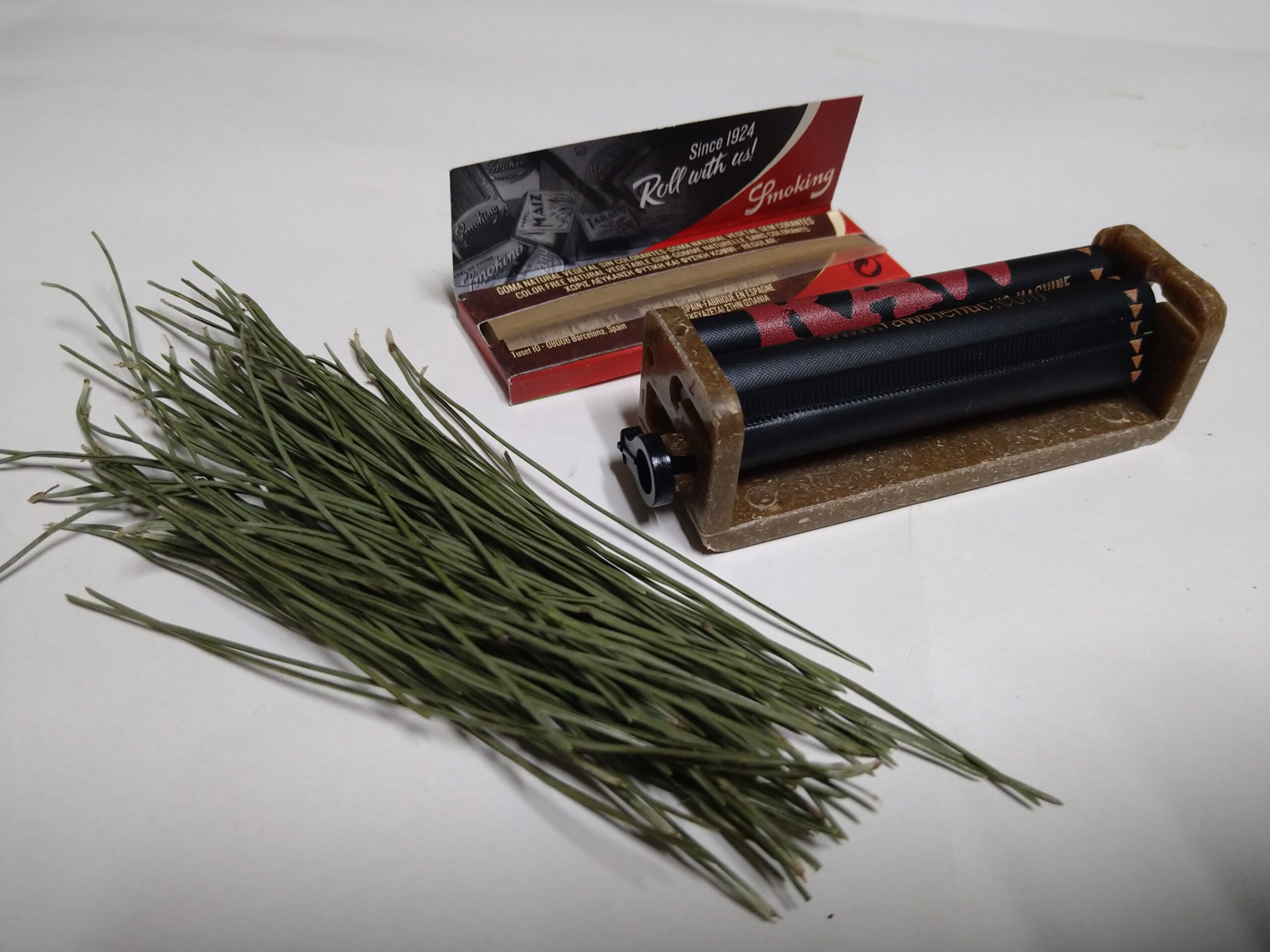 乾燥した松葉(赤松葉でも黒松葉でも可)、紙巻用の紙、タバコ用ローラー