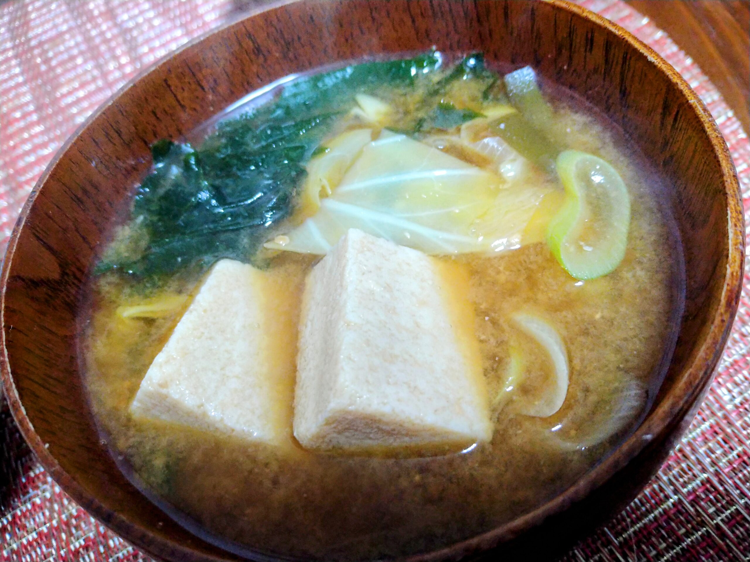今日も味噌汁にキャベツを入れて食べました。
