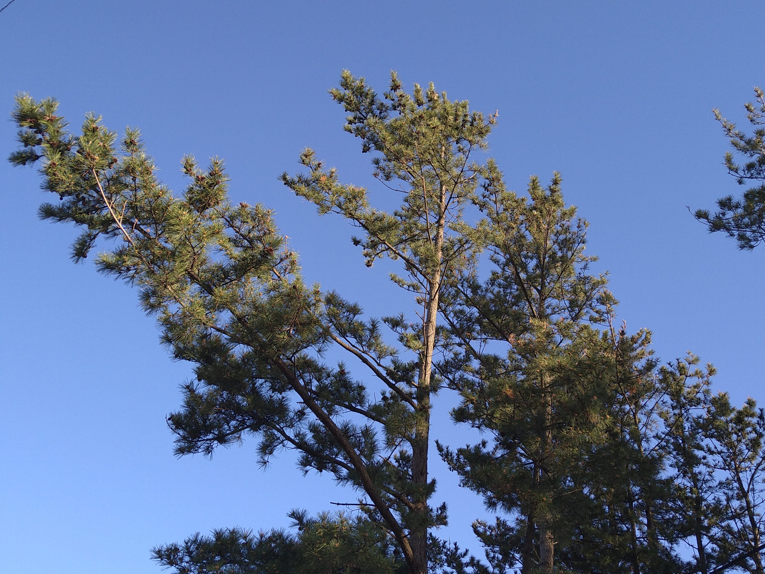 この日は突き抜けるような青い空でした。黒松も元気いっぱいに朝日を浴びているように感じます。
