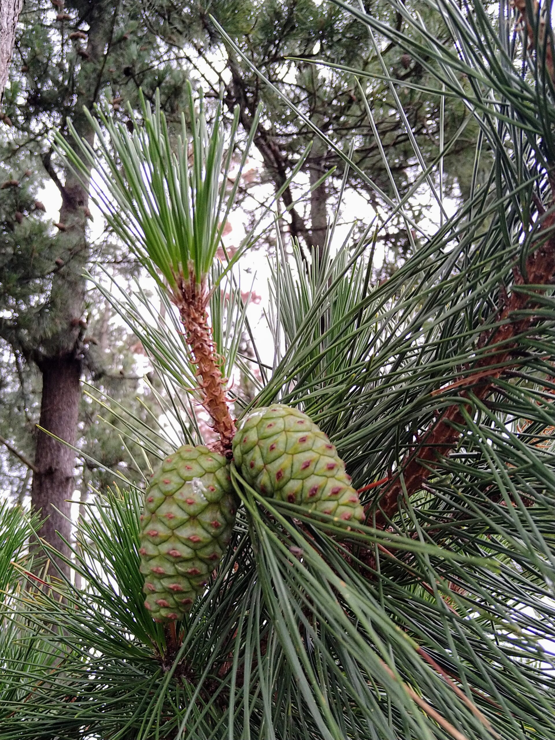 まだまだ青い松ぼっくりも。これが秋に向かってだんだんと茶色くなっていきます。まだ青ぼっくりを活用しようと思えばできそうですね。