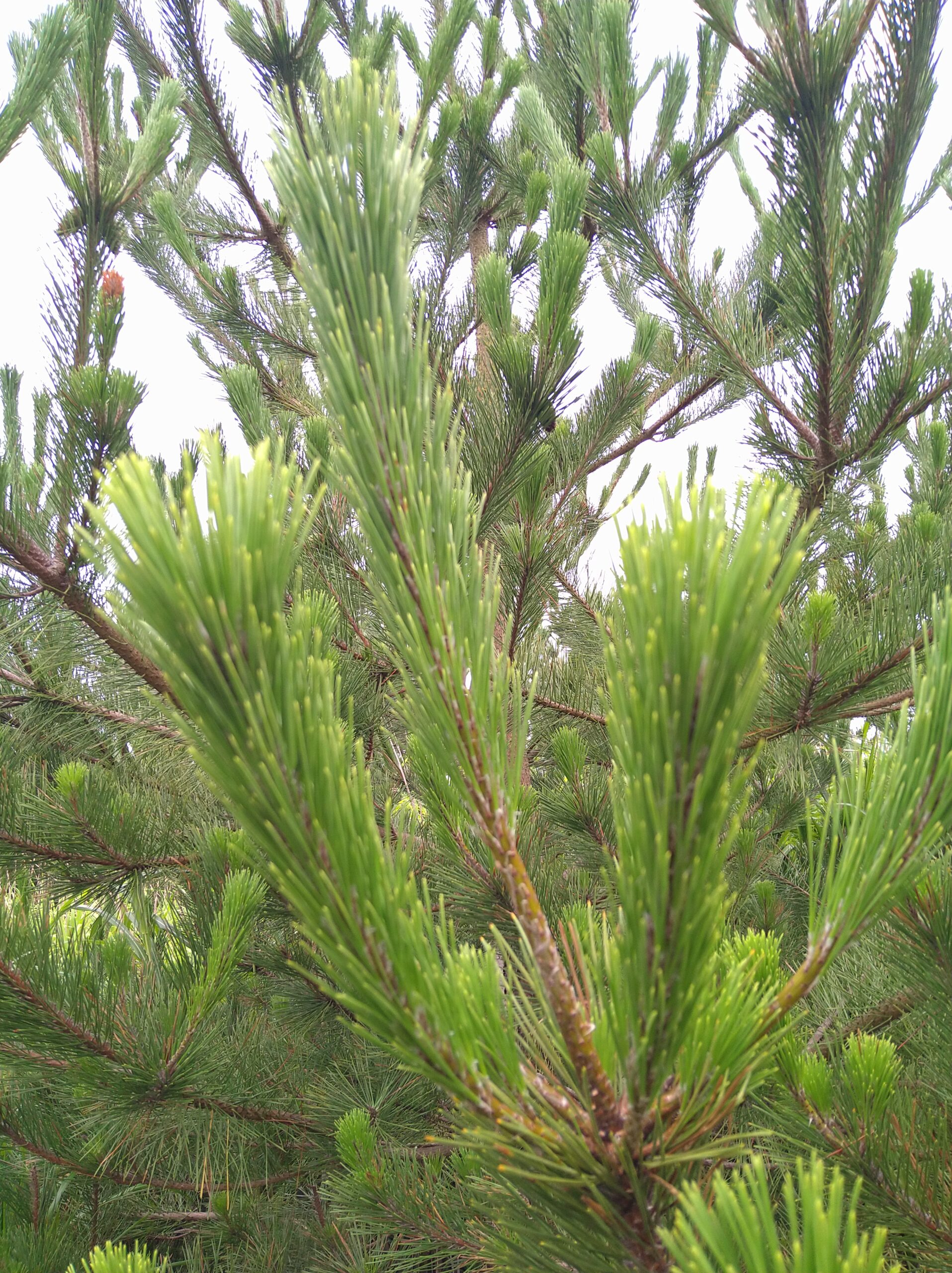 このように元気のある松は若い木です。すこし引いて撮影した松がこちら。