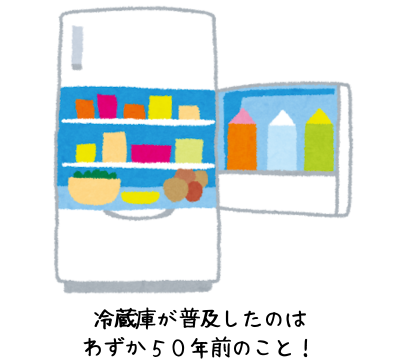 今でこそ、ビニールハウス栽培や冷凍・冷蔵の技術が発達して、真冬でもいろんな野菜や果物が手に入るようなりました。しかし、ひと昔前は、冬は米や麦などの穀物や乾燥させた野菜(切干大根等)や乾物、長期保存の効くイモ類などに限定されていました。冷蔵庫が一般家庭に拡がったのも高度経済成長と呼ばれる昭和40年代の事です。まだ50年しか経っていません。