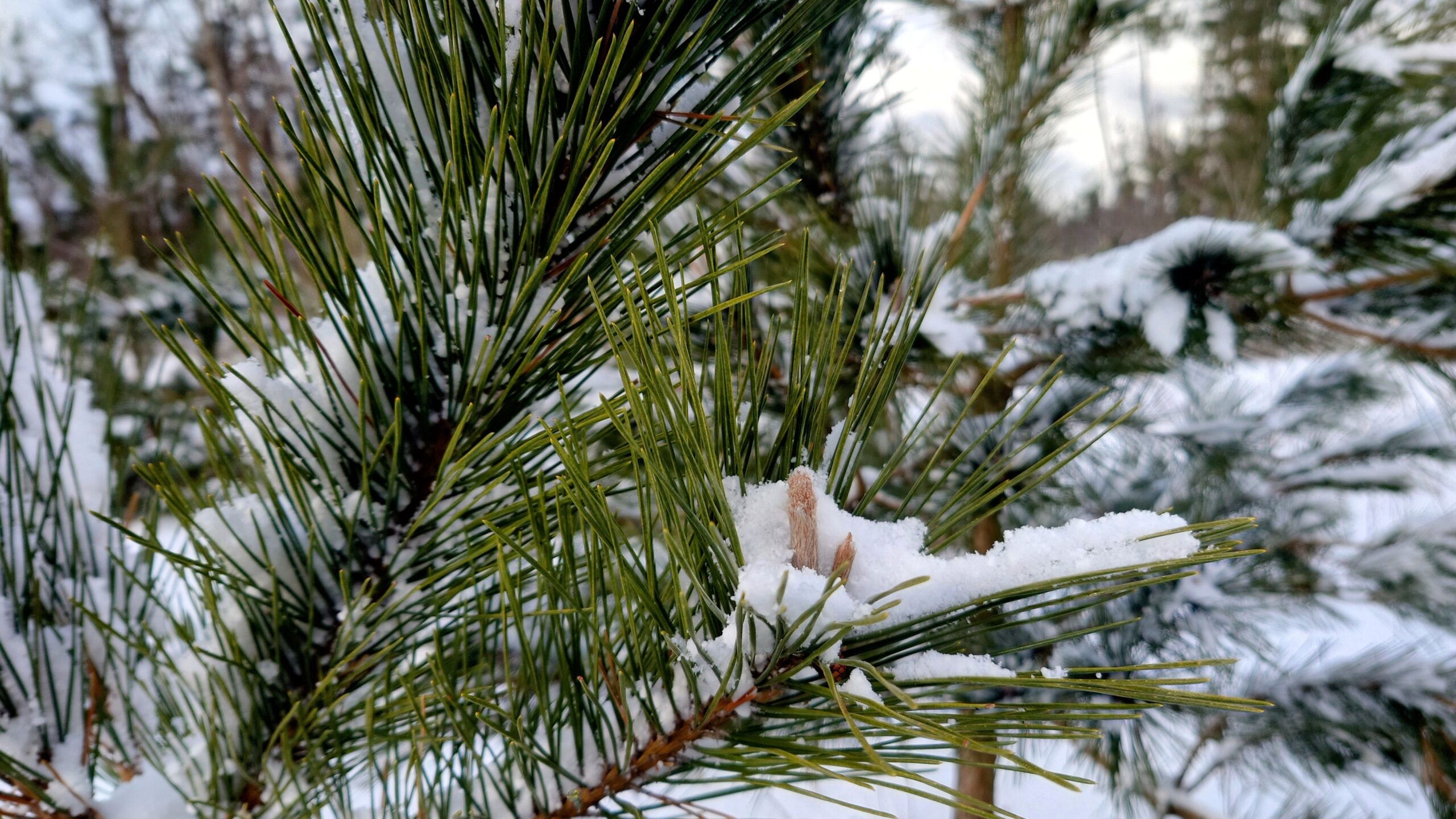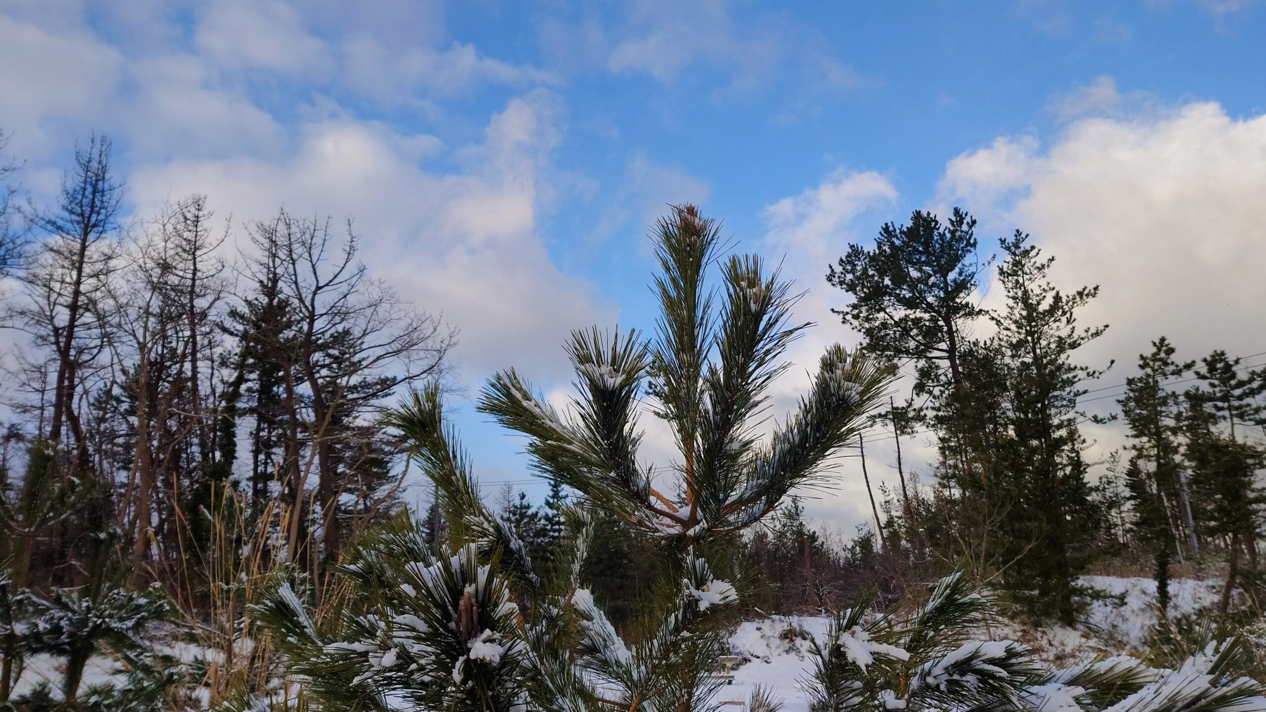 近くの松の若木は雪をうっすらと纏って。