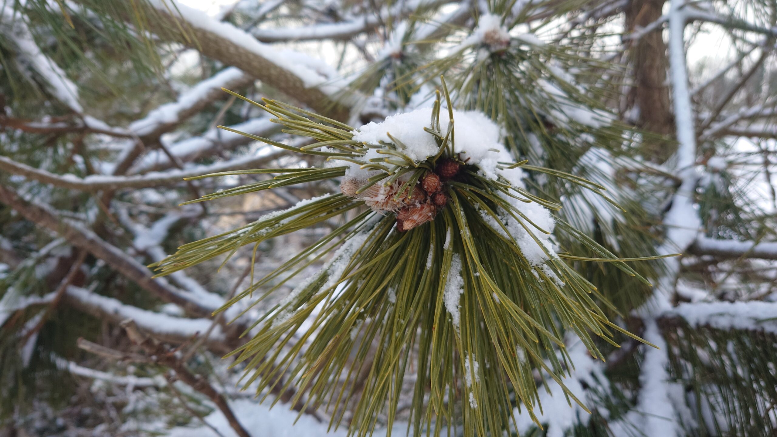 枝先には雪が乗っています。