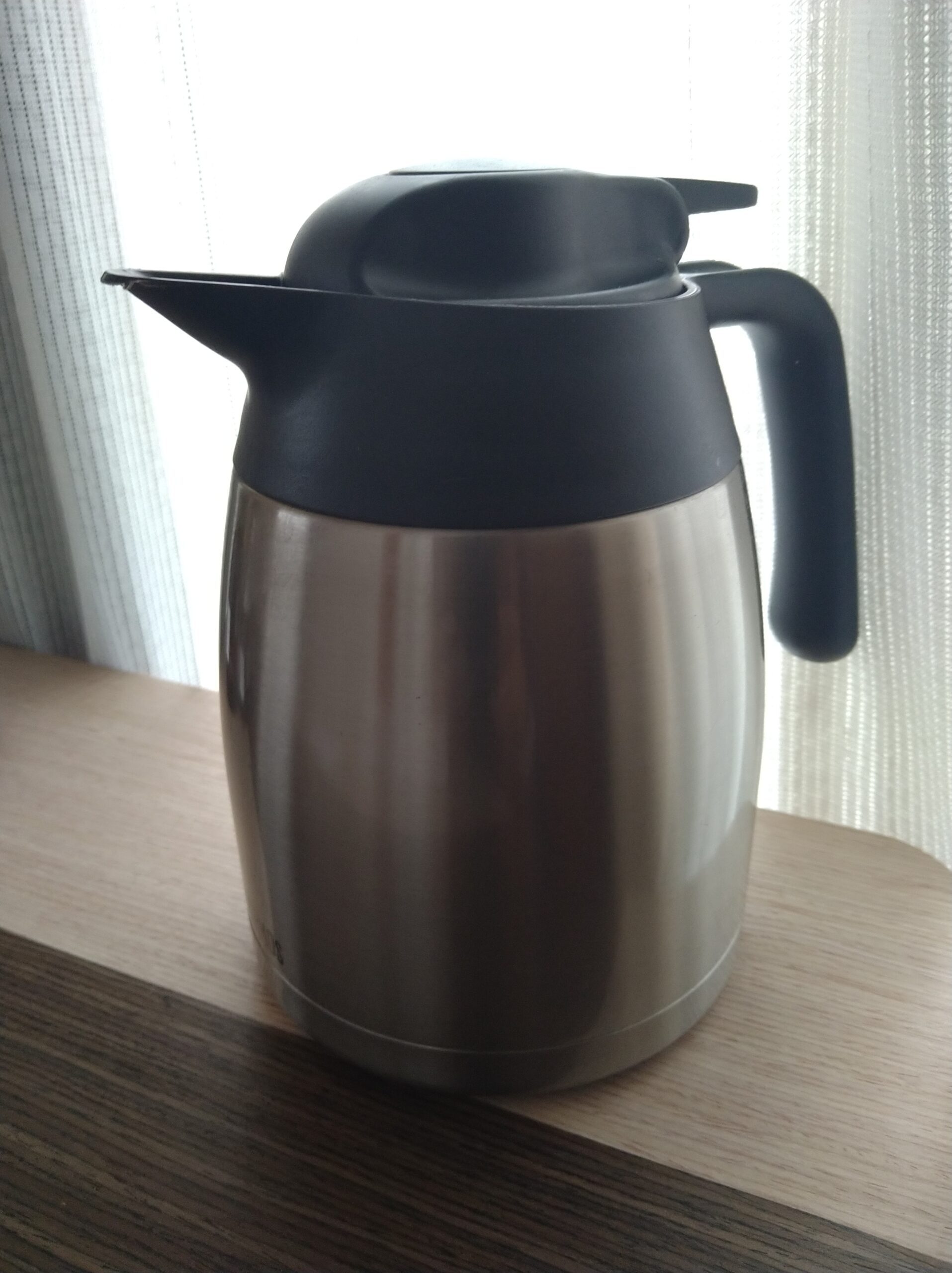 用意するものがあります。それは小さめのポット。あるいは大きい水筒でもよいでしょう。我が家ではこのような小型ポットを使用しています。