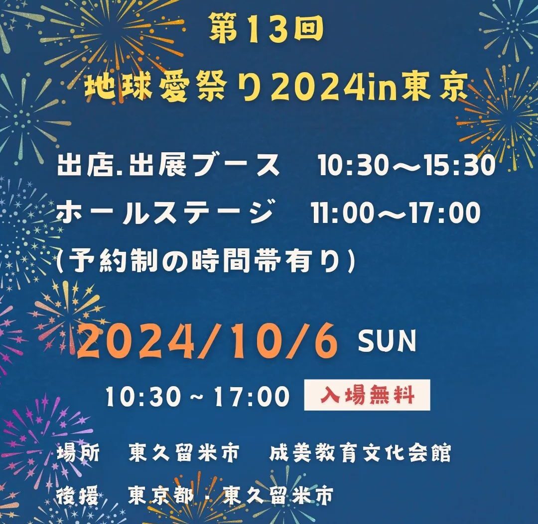 「第13回地球愛祭り2024in東京」が10月6日日曜日に開催されます。当店「躍る大地」は今年もご縁いただき、出店させていただくことになりました。