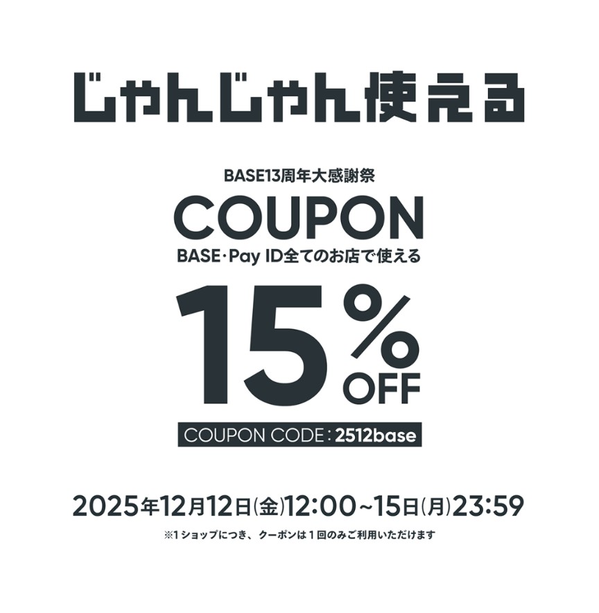 12/12 12時より販売サイトBaseさんが13周年を記念した感謝祭を開催いたします!