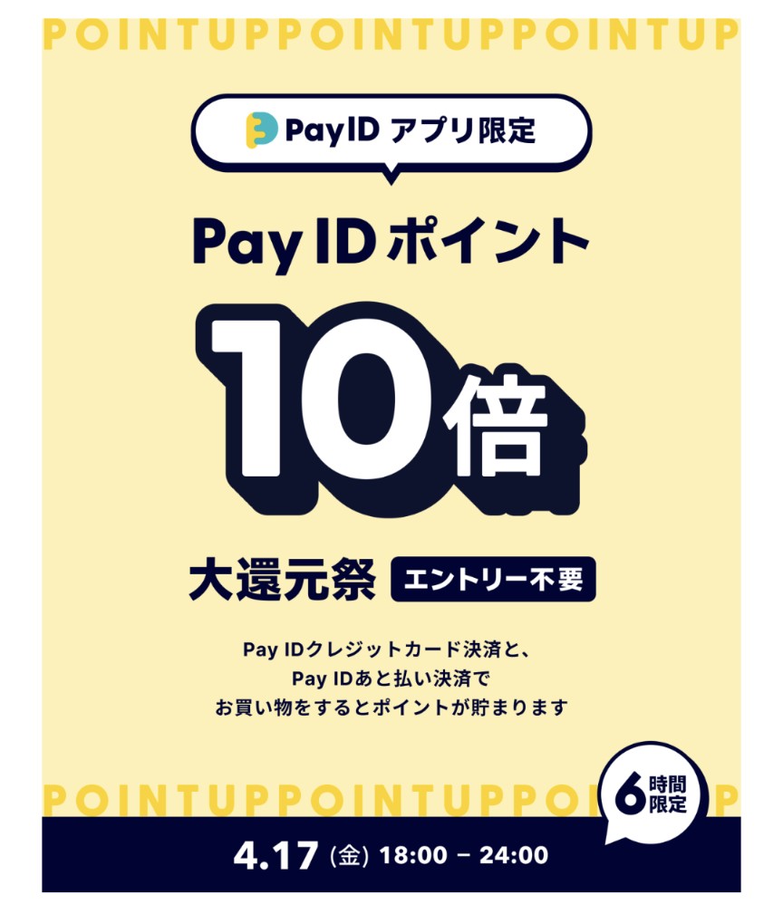 2026年4月17日金曜日18:00~24:00PayIDアプリ限定でポイント還元祭が開催されます!