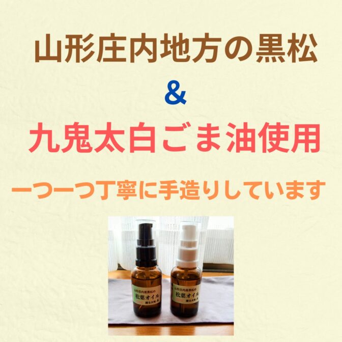 《まつばオイル》は、庄内地方の自然に育まれた黒松を使用し、丁寧に手作りで仕上げました。太白ごま油にじっくりと抽出され、松の栄養素をしっかりと感じられる独自のオイルです。自然のままの香りと風味が、あなたの日常に特別なひとときをもたらします!